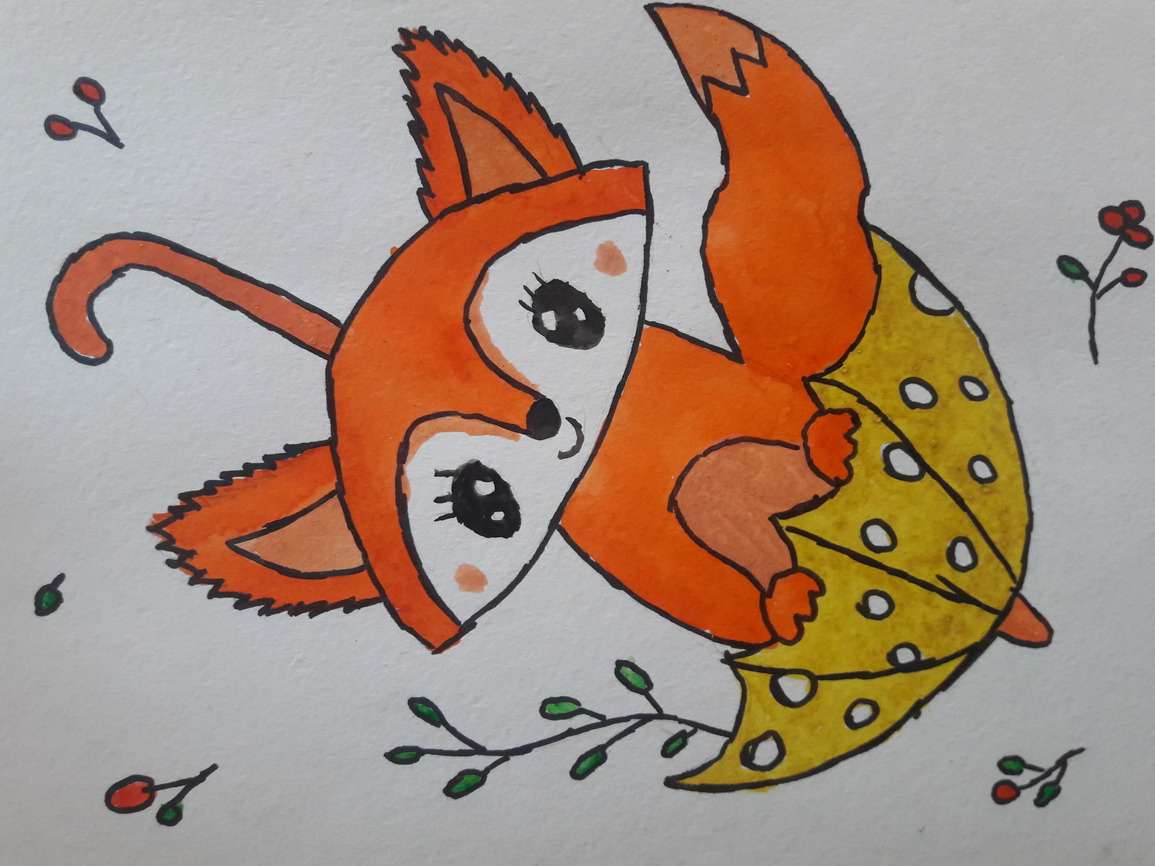 Лисёнок с зонтиком