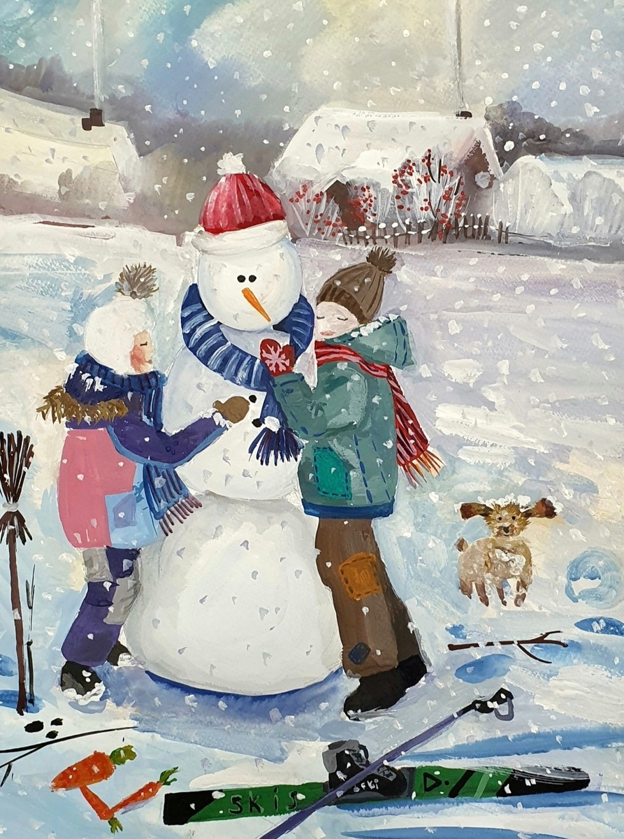 Снеговики радуются снегу